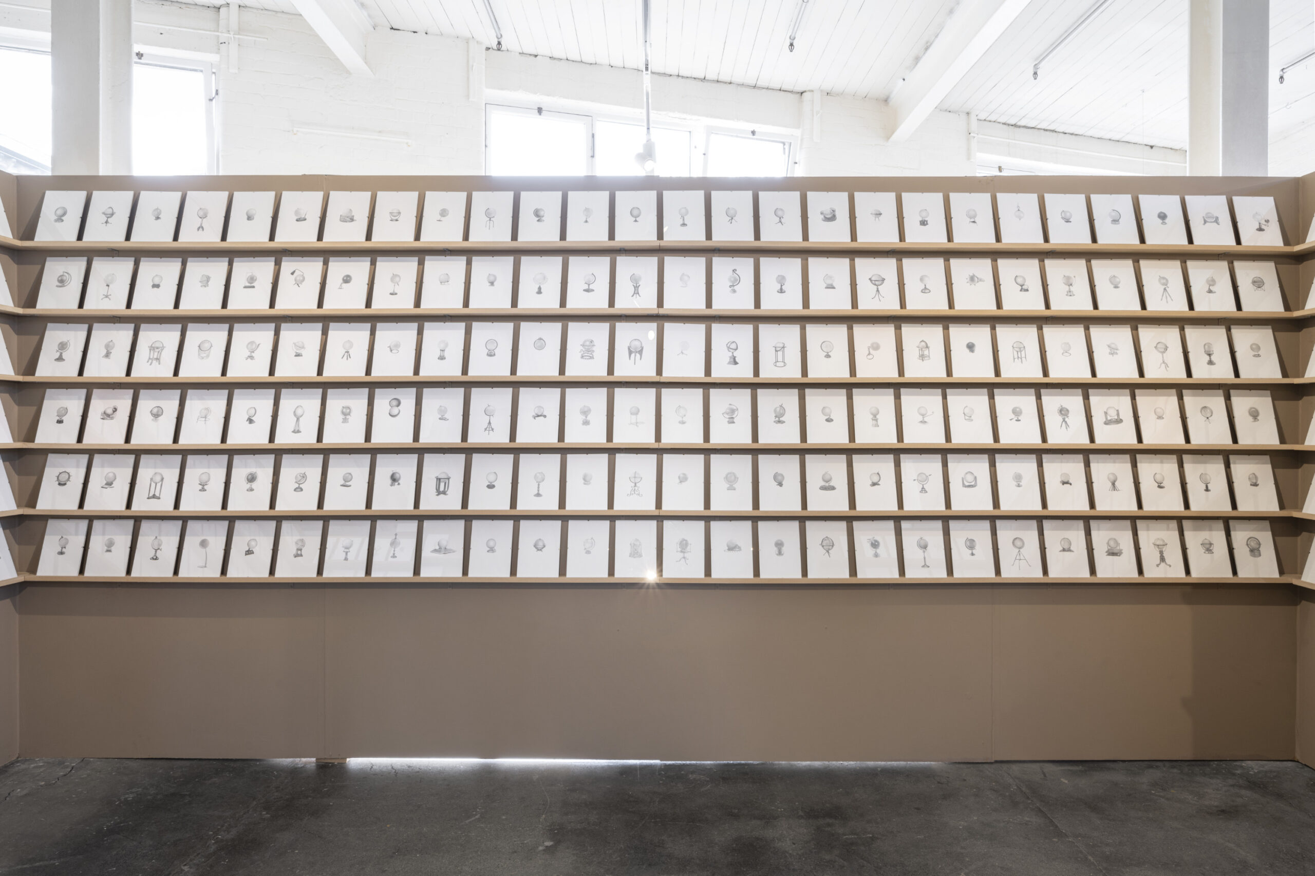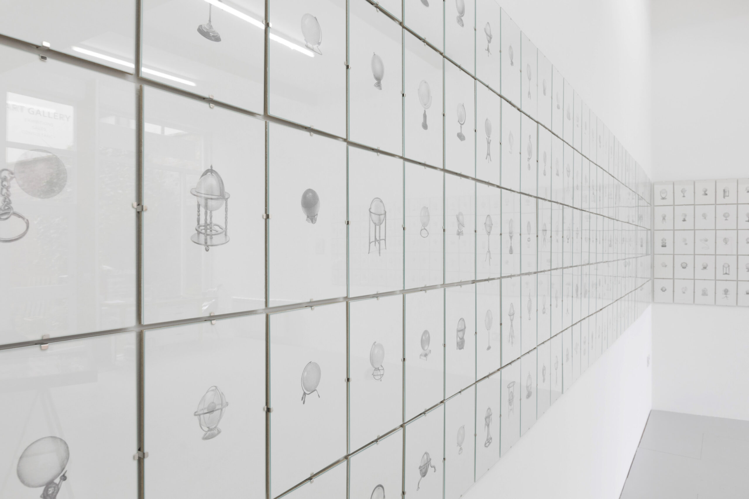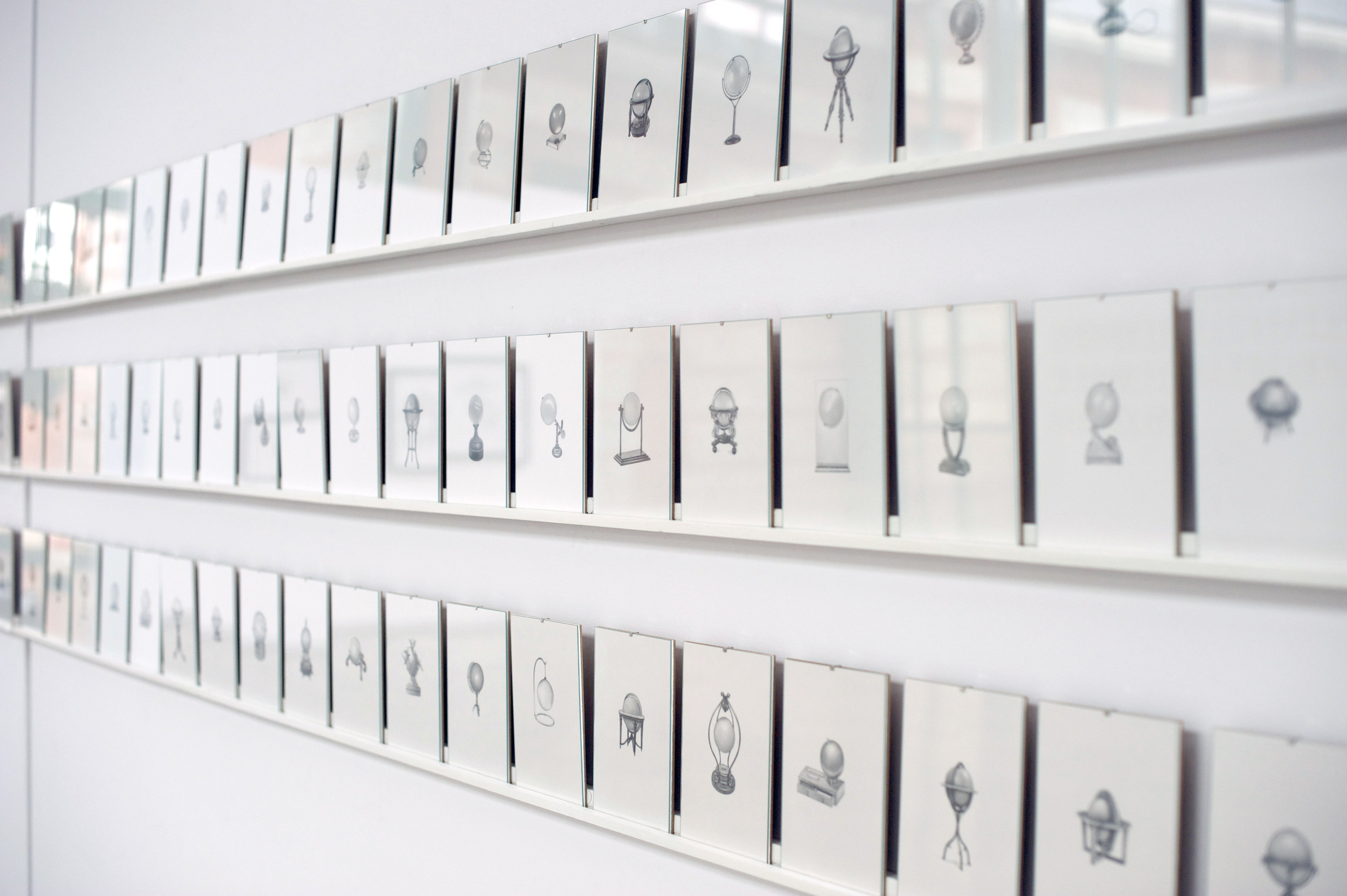 A work made of 365 drawings of different globes, created as one-drawing-per-day during 2015. The drawings are based on real globes seen in shops, museums, books, or the internet. The globe themselves, of same size and position on the paper, are drawn without any cartographical details, as if suggesting an unexplored or post-apocalyptic world. There is also a 366th globe drawing, created to be included on leap years only. A limited edition print of this leap globe and an artist book of the full collection are available (scroll down for more details).