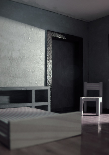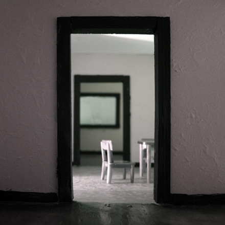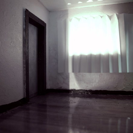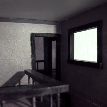 Series of photographs of a dollhouse. The dollhouse is an object loaded with a sense of nostalgia and intimacy. In these images I experiment with the composition, the light and colour to blur the boundaries between what is real and what artificial. The rooms seem to be in a limbo of ambiguity while the strangeness of the scale and the fragility of the hand-made quality evokes a sense of loss and displacement, inviting a dialogue between inside and outside, between presence and absence.