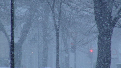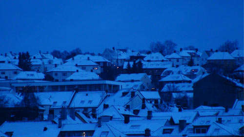 I never get tired of the snow. It covers everything again. At last with the snow, the cold has receded a little and it is very nice to wander around again. Walking home at dusk my camera has trouble focussing and it saturates the colors. I like it. It may be a cliché, but it is mine, so I enjoy it.