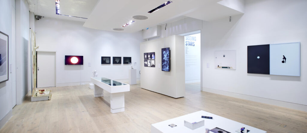 Seeing Stars at The Stanley and Audrey Burton Gallery, University of Leeds, was an exhibition curated by myself. The exhibition was an extension of my research into our relationship with space through arts and science visualisations. It included contemporary art works that combine recent developments and technologies of space research and art-making with ancient visions and poetic explorations of the cosmos.